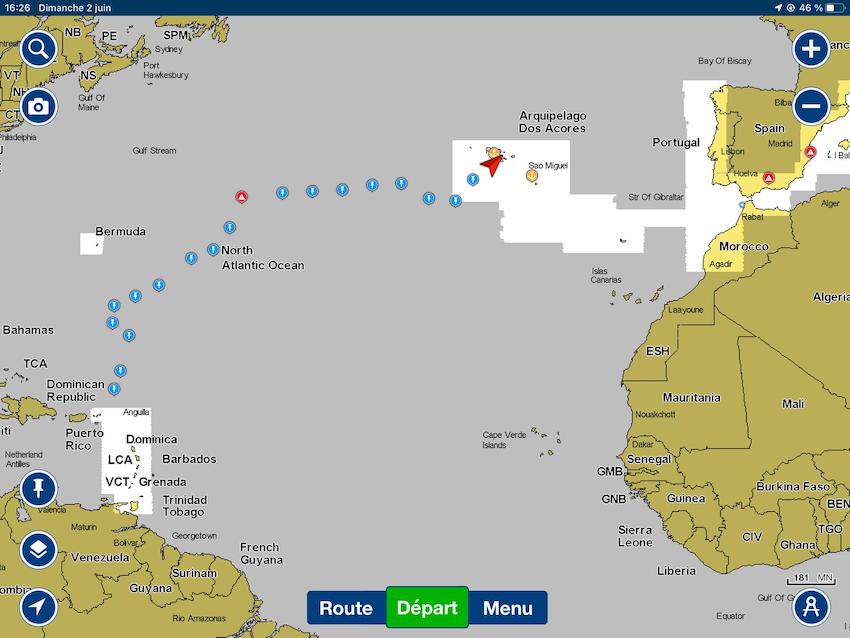 Le 3 mai, après avoir récupéré deux jeunes équipiers, nous tirons des bords depuis Pointe-à-Pitre pour contourner