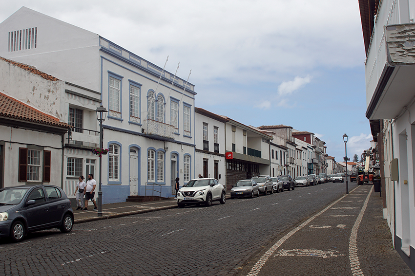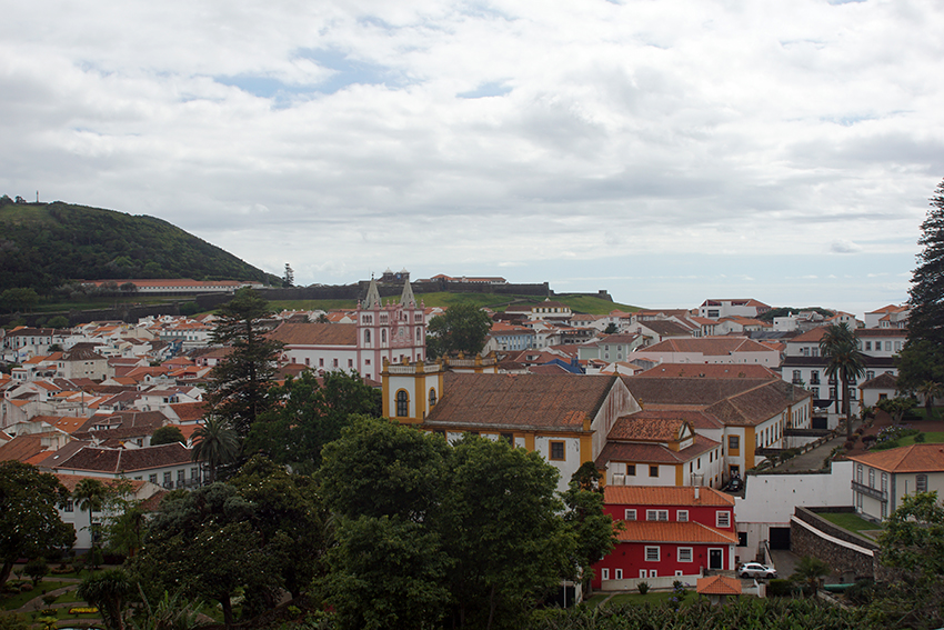Le lendemain, après avoir longé au moteur la côte sud de Sao Jorge, un bord de près nous conduit à Angra do Heroísmo sur Terceira où nous prenons une place port pour trois jours.