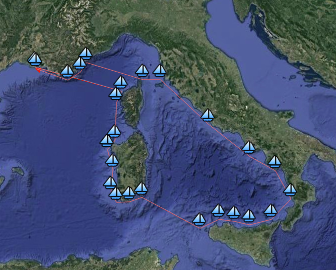 La Corse, la peu fréquentée côte ouest de la Sardaigne, la très jolie côte nord de la Sicile, les toujours fascinantes îles éoliennes (Filicudi, Salina, Lipari, Vulcano), la Calabre, les îles pontines et toscanes, Elbe et retour après un bref stop à Macinaggio. Voilà pour cette année.