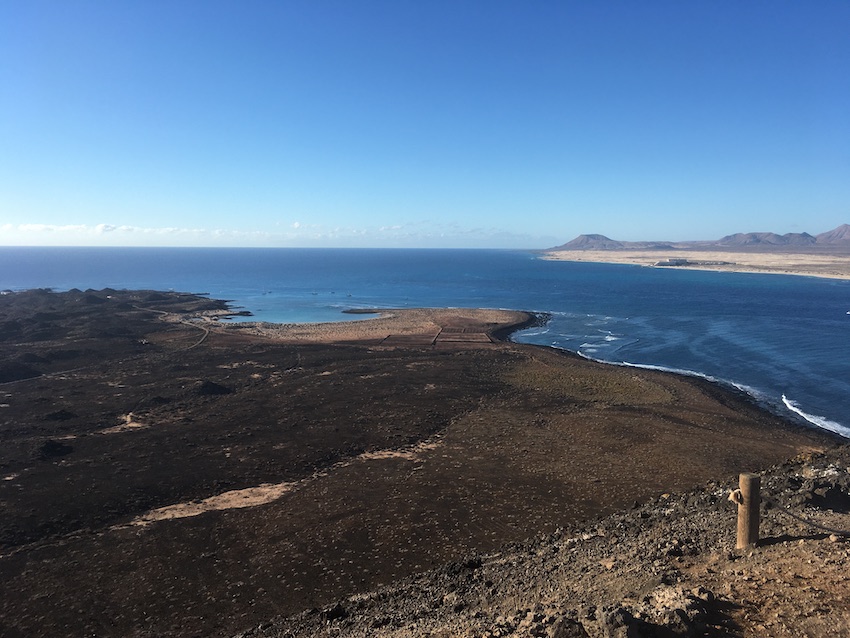 Passage sur Fuerteventura. Après un stop au sud de Lanzarote à Playa Blanca nous resterons trois jours sur le mouillage idyllique de la petite île de Los Lobos hélas très rouleur comme tous ceux de l’archipel et envahi la journée par des catas remplis à ras bord de touristes ayant des difficultés auditives vu le niveau sonore de la daube musicale qui s’écoule de ces embarcations et qui nuit copieusement à la contemplation de ces lieux magiques. Ascension redoutable des 176 m de dénivelé de la caldera puis direction Tarajal, petit port aux tarifs abordables 25 miles plus au sud. Ici, peu de tourisme mais une vie locale qui nous permet de prendre contact tranquillement avec Fuerteventura qui fut crée spécialement, il y a très peu de temps, en hommage à l’acteur Lino Ventura et sa légendaire force tranquille… Non, là je m’égare. La chaleur et l’abus d’Estrella nuisent gravement à la santé mentale !