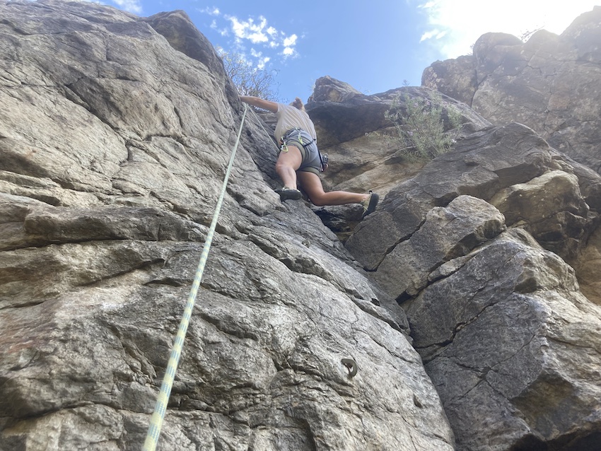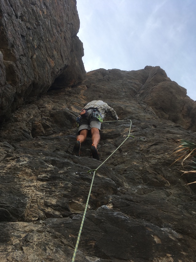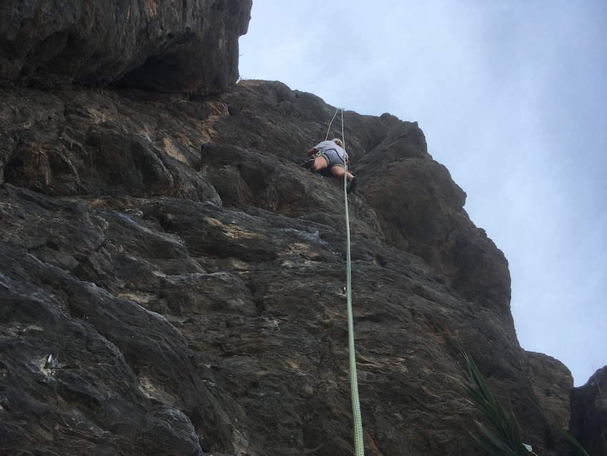 Nous ressortons également la corde pour faire quelques longueurs sur deux sites d’escalade aux environnements très particuliers. L’un à la fois urbain mais face aux rouleaux et grondements de l’océan et l’autre dont l’accès bien que rapide représente déjà un objectif de promenade original. Et à chaque fois, des rochers pour nous tous seuls !