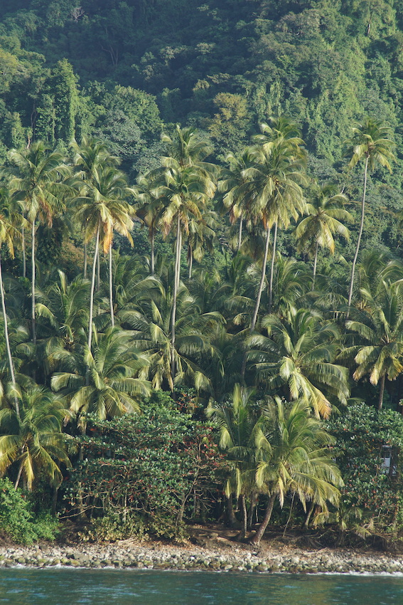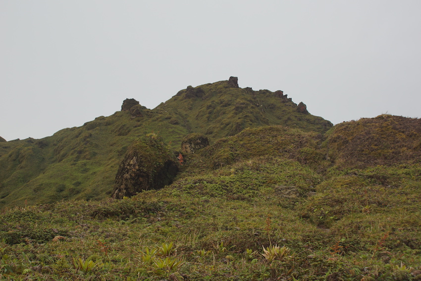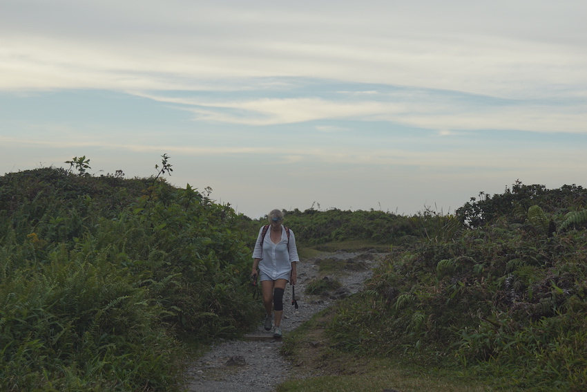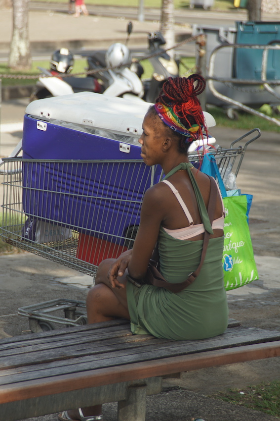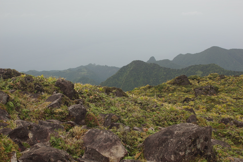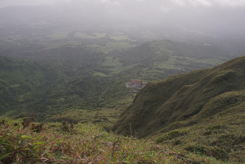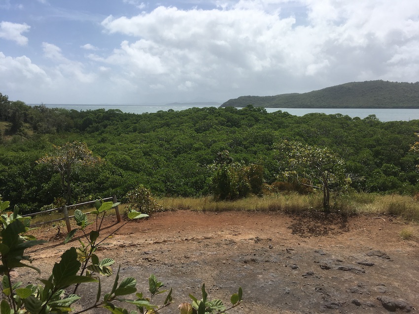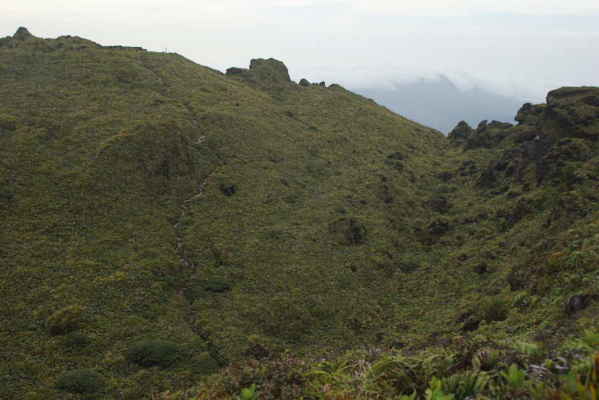C’est ainsi que nous gravirons les 700 m de dénivelé de la Montagne pelée qui ne l’est pas (pelée) puisque le sentier qui mène à son sommet est une véritable tranchée tracée dans une végétation inextricable. Et ça grimpe sec. Les touristes croisés à la descente et proches de l’agonie devraient se souvenir longtemps de cette sinistre montagne. Mes pieds également, eux qui n’avaient pas vu de chaussures depuis des semaines !